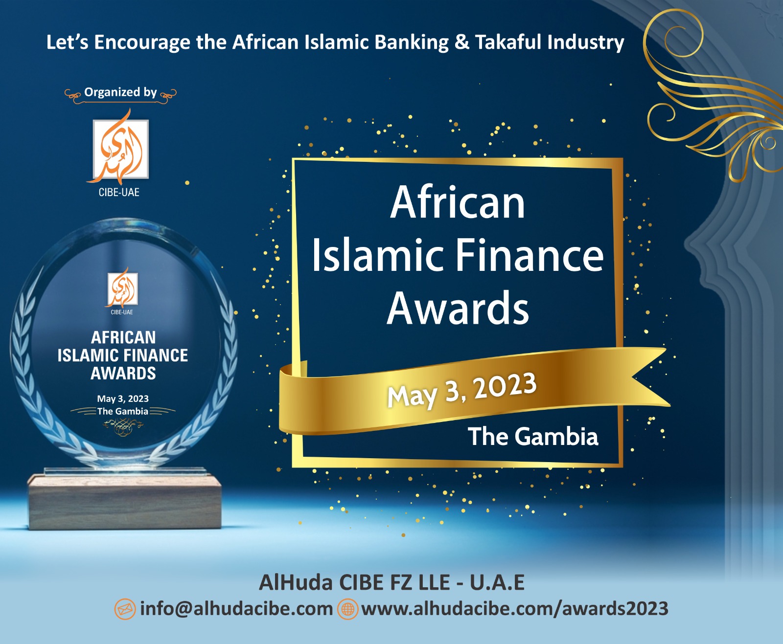 African Islamic Finance Awards distribution ceremony will be held along with 10th African Islamic Finance Summit which is scheduled on 3rd May 2023 in Sir Dawda Kairaba Jawara International Conference Center, The Gambia with the Theme, lets encourage the African Islamic Banking and Takaful Industry. AlHuda Centre of Islamic Banking and Economics (CIBE) is organizing Africa